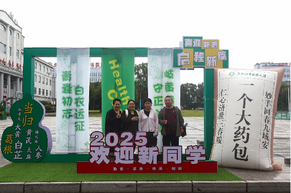 清晨的校园已焕新颜,醒目的迎新彩虹门与条幅让新生刚踏入校园就能感受到浓厚的专业文化氛围,为这场“初见之约”增添了独特的中医药文化印记。