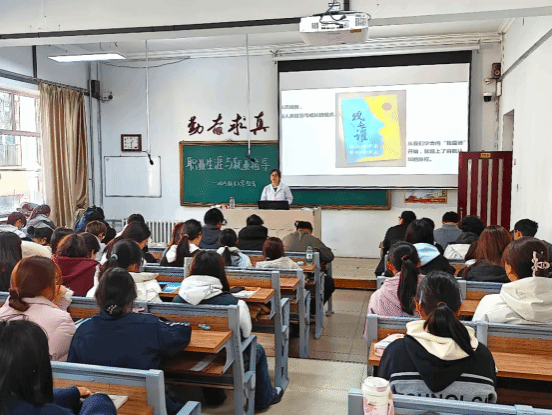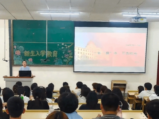 就业指导与心理教研室主任郝美玲以大学生职业生涯与就业教育为题为新生开展专题教育。