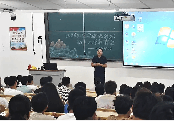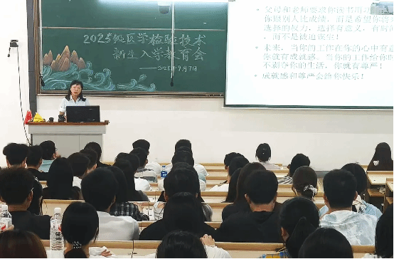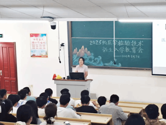 医学检验专业部主任周艳丽就专业培养目标、核心课程体系、行业发展前景、专业实践安排等内容为新生做详细介绍,教研室主任陈巧云及李博谦介绍课程安排。