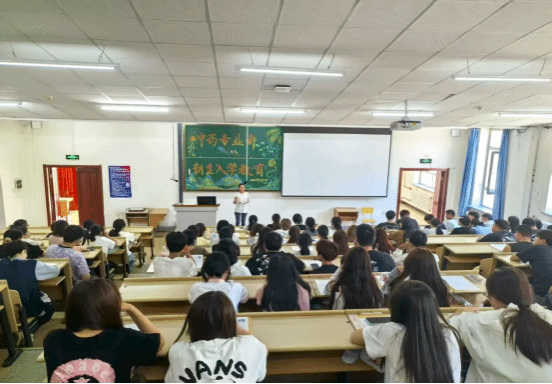 中药专业部主任徐姣从专业介绍、师资队伍、实验室建设、培养目标、主干课程、就业方向和考研情况等方面为新生开展入学教育。