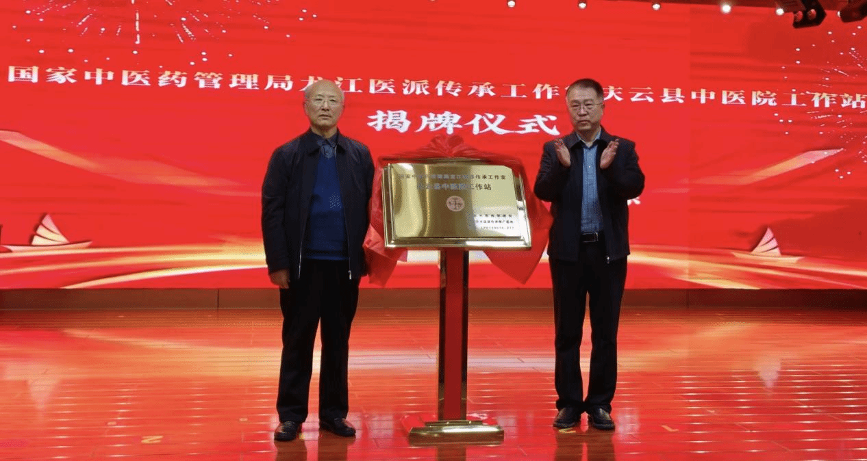 随后,国家中医药管理局龙江医派传承工作室庆云县中医院工作站揭牌仪式在庆云县中医院隆重举行。庆云县委常委、统战部部长姚雅斐,县卫生健康局党组书记、局长张荷英出席仪式并致辞,庆云县政协副主席、中医院院长王兴东与姜德友教授共同为工作站揭牌,中医院党委书记李义坤主持仪式。