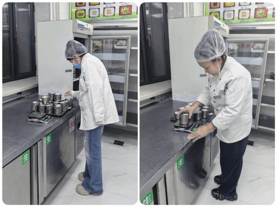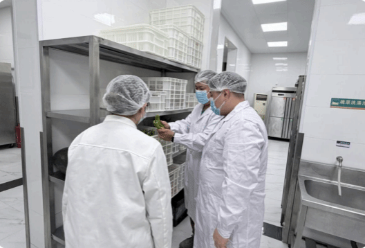 全程管控餐饮具洗消环节,严格规范“一刮、二洗、三冲、四消毒、五保洁”操作流程,细致检查食品留样,确保每一步都符合食品安全标准。