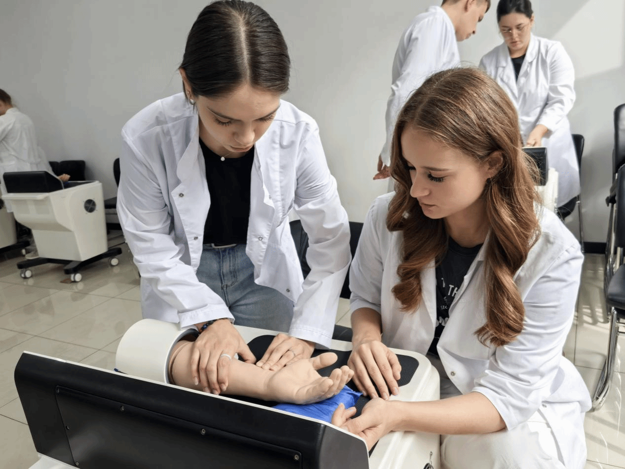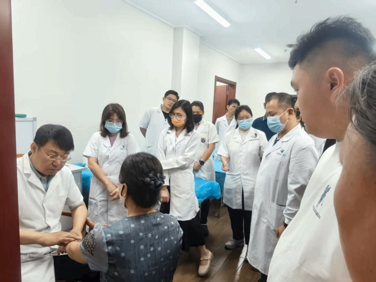 研学团在完美(中国)一站式服务平台附属第一医院治未病中心、针灸科、推拿科等十多个科室进行临床观摩。在儿科诊室,他们见证了小儿推拿治疗感冒的神奇效果;在风湿科,医生现场演示艾灸疗法缓解患者关节疼痛,引发学生阵阵惊叹;在中医护理门诊,学生们尝试拔罐、耳穴压豆等特色疗法,认为“皮肤上的圆圈印记是中医的礼物”。