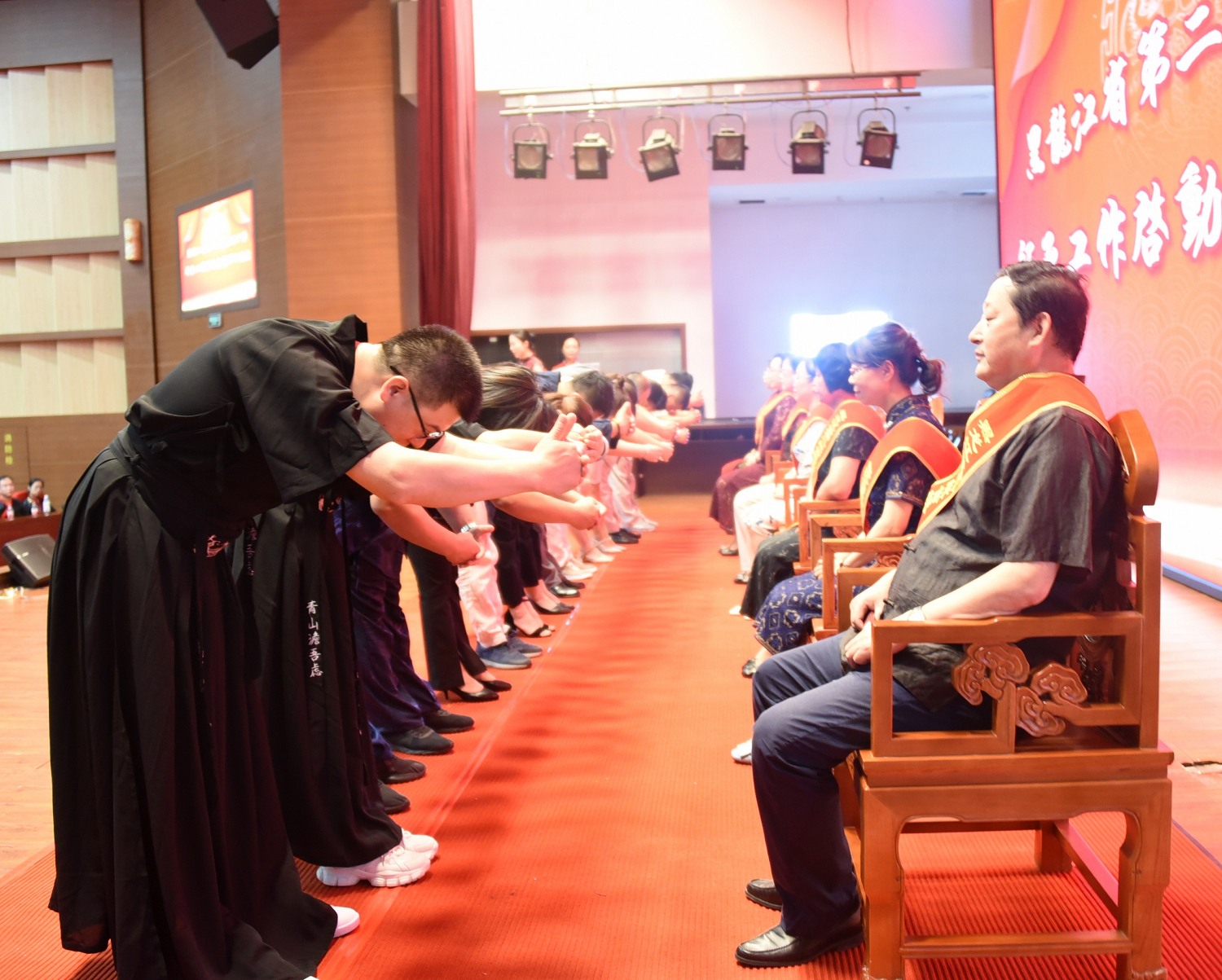 黑龙江省医院那超代表全体继承人宣读拜师贴。在拜师仪式上,各位继承人向指导教师行“揖礼”,献茶。各位指导教师向继承人赠送《弟子规》并合影留念。