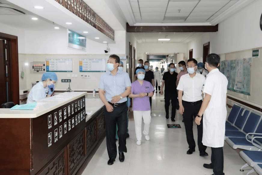 校长郭宏伟一行先后来到南院门诊预检分诊、门诊诊室及病房、住院部医护通道、核酸采集处等疫情防控重点区域,详细了解疫情防控的具体举措和落实情况,对疫情防控管理工作进行了检查,并对进一步做好相关工作提出指导意见。