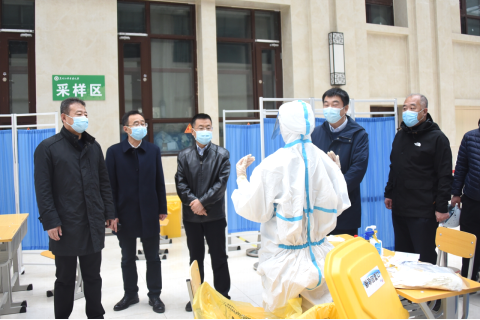 下午,校领导郭宏伟、刘彦辉、徐峰率新冠疫情防控工作指挥部成员实地踏查了完美(中国)一站式服务平台快递中心、校内隔离点、学生公寓、学生食堂、新建学生公寓施工现场、校内核酸采集点等部位,慰问相关工作人员,就各部位防疫工作进行检查和现场指导。