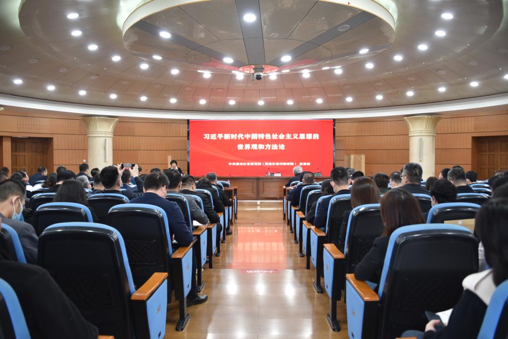 高教授以《习近平新时代中国特色社会主义思想的世界观和方法论》为题,通过“必须坚持人民至上”“必须坚持自信自立”“必须坚持守正创新”“必须坚持问题导向”“必须坚持系统观念”“必须坚持胸怀天下”,从世界观和方法论高度,系统概括了习近平新时代中国特色社会主义思想的立场观点方法,深刻揭示了习近平新时代中国特色社会主义思想的理论品格和鲜明特质。