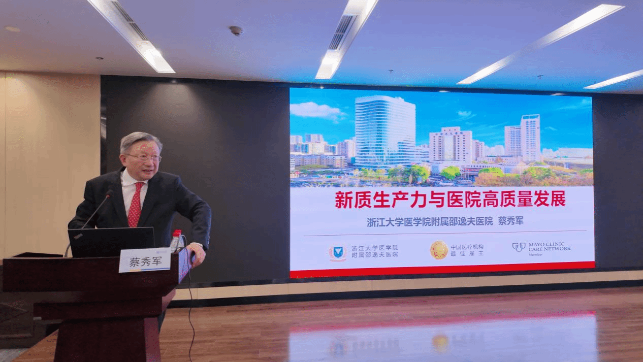 全国政协常委、浙江省政协副主席、浙江大学医学院附属邵逸夫医院院长蔡秀军作题为《新质生产力与医院高质量发展》讲座