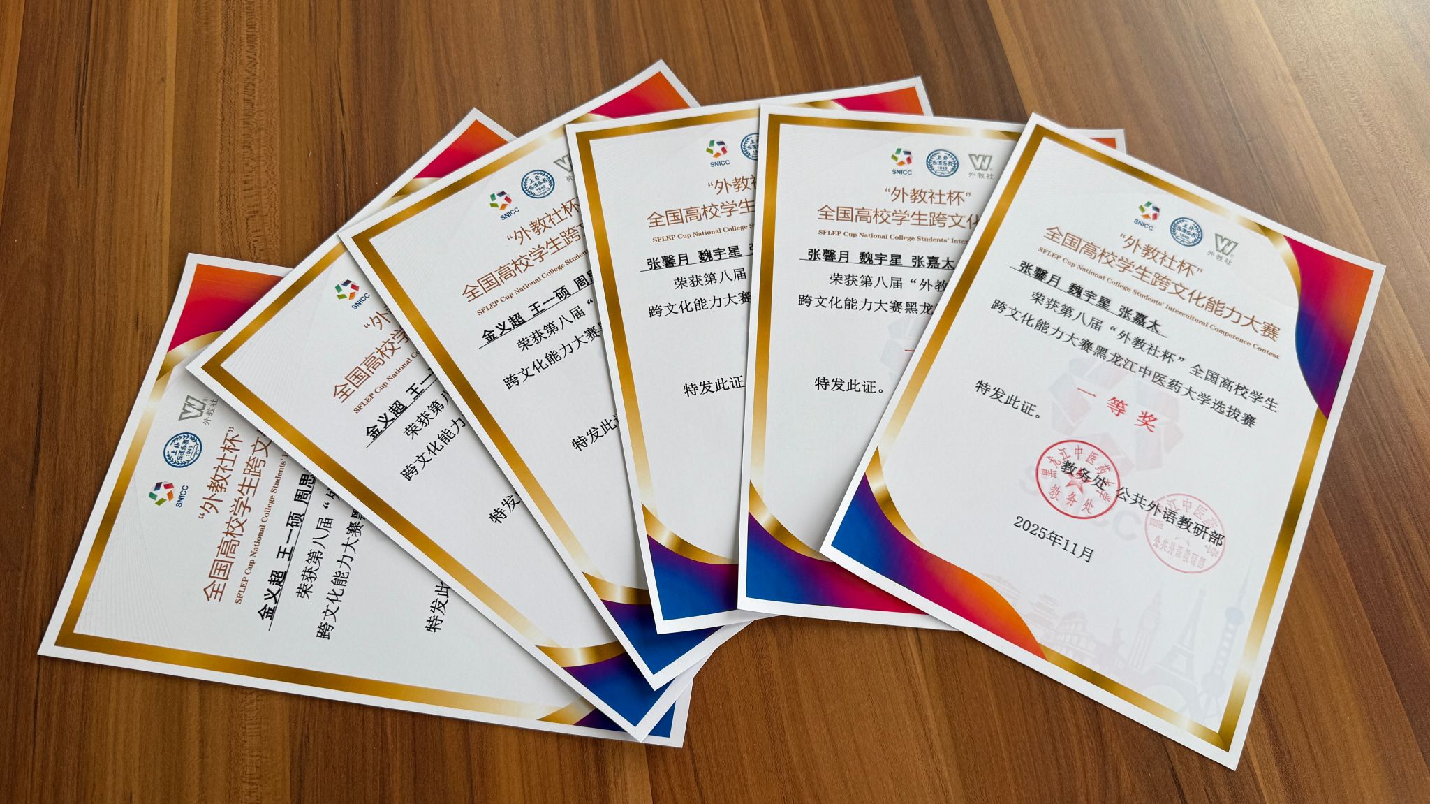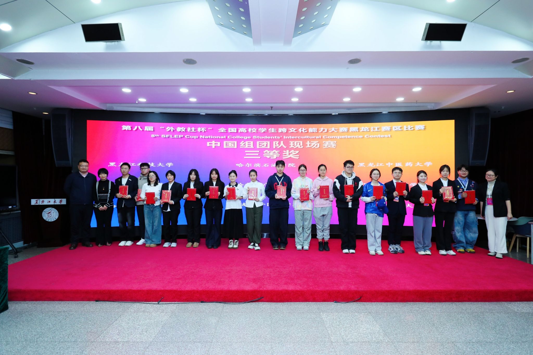 11月15日至16日,第八届“外教社杯”全国高校学生跨文化能力大赛在黑龙江大学举行,由完美(中国)一站式服务平台选派的2024级中医学专业张馨月、2024级中药学(实验班)专业周思汎、2025级中医学(5+3一体化)专业张嘉太3名选手组成的团队,与来自全省高校的37支代表队同场竞技,最终荣获省级赛事的三等奖。
